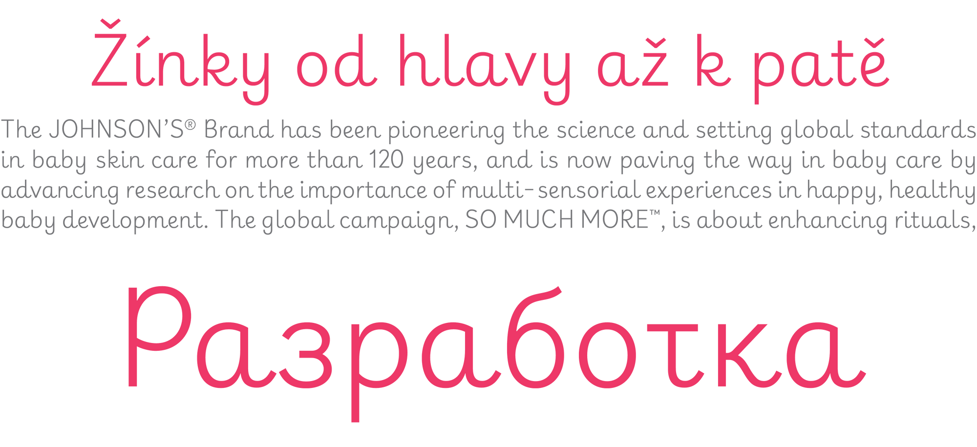 The Johnson & Johnson sub brand, Johnson's Baby, has a product line and supportive marketing materials with global reach. LuxTypo worked to develop a distinctive custom font that could be applied to packaging and advertising while establishing continuity across language scripts, latin and non-latin type.